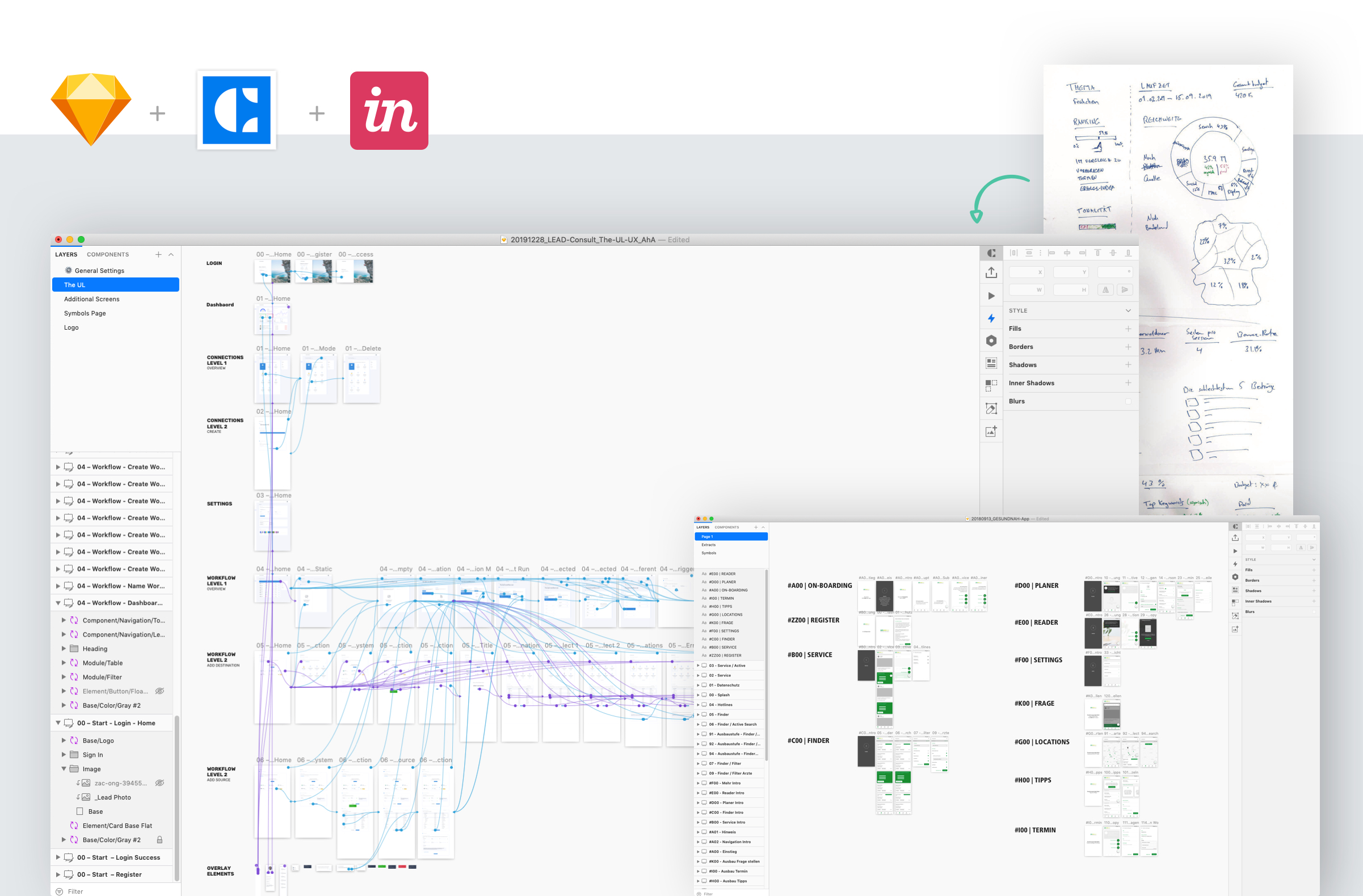 Creating wireframes, user flows, customer journeys and high fidelity prototypes with various tools such as Sketch, Craft, InVision, Figma and more…